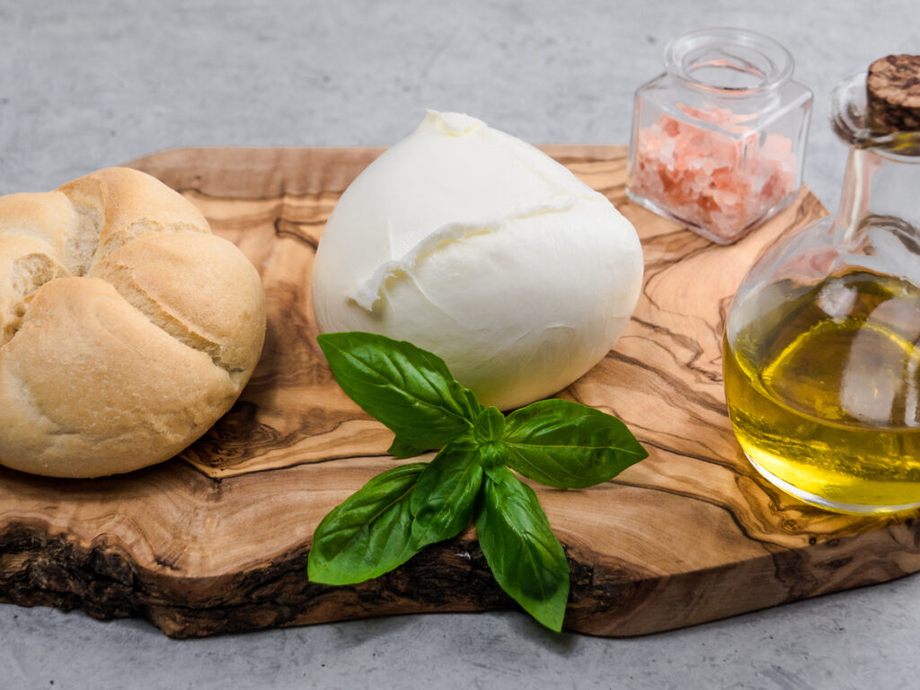 - Latte bufalino: la delicata morbidezza che crea formaggi e latticini freschi, celebri per la loro cremosità unica e la leggerezza del sapore, simbolo delle coste tirreniche e della tradizione casearia laziale più raffinata. Dal sapore tipicamente lattico, dolce, e fresco, con una leggera sapidità. L’assenza quasi totale di carotenoidi dona loro un colore bianco porcellana.
